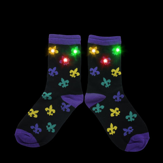 Shine Bright with Our Light-Up Mardi Gras Socks!