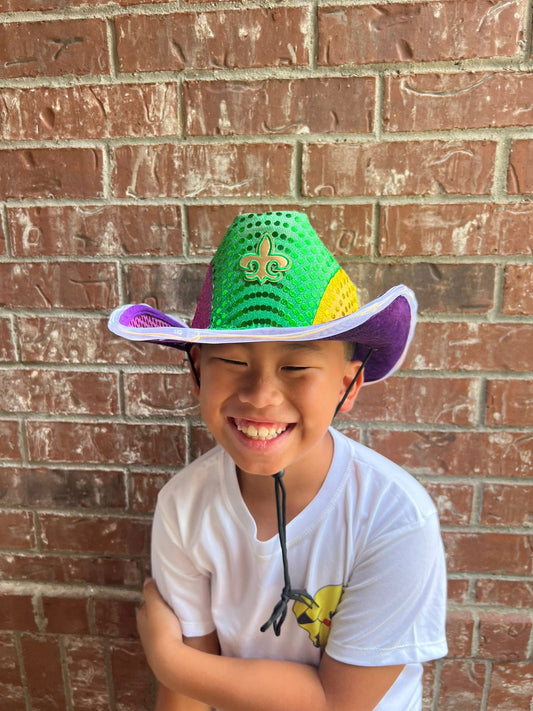 Shine Bright in the Mardi Gras Parade with our Light-Up Cowboy Hat!